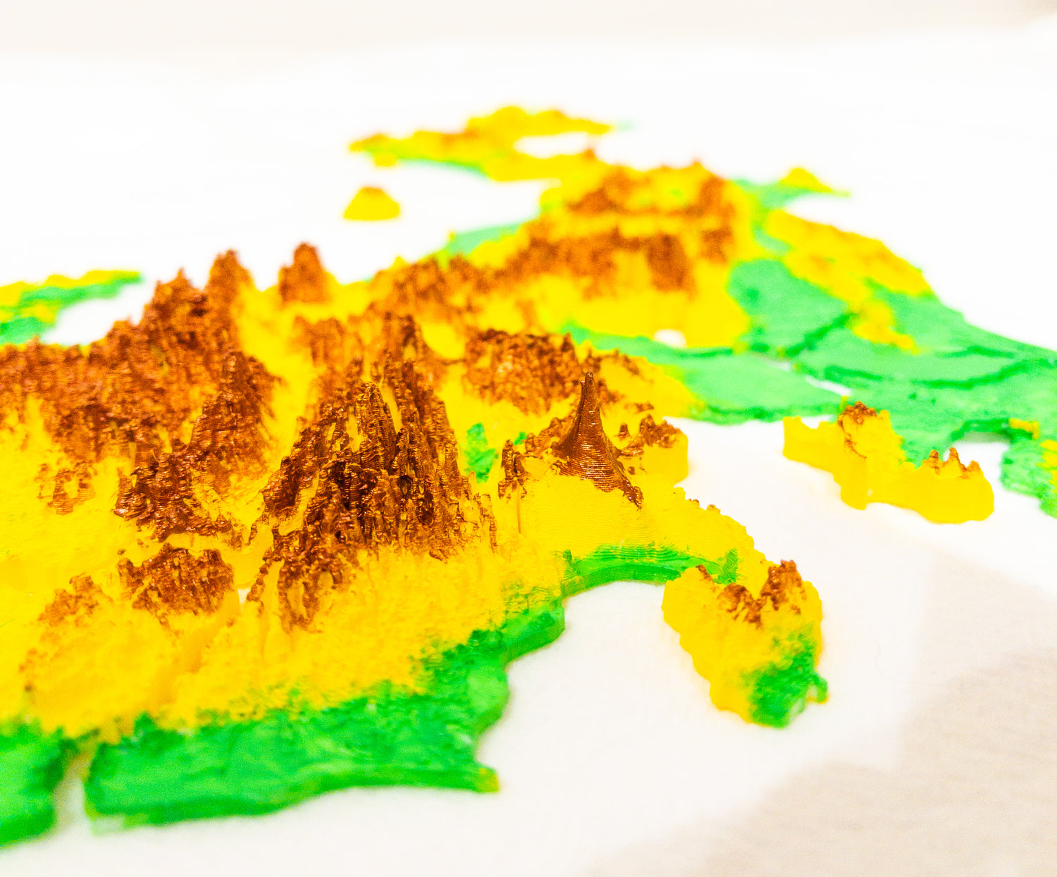標高で色分け。直感的に地形を覚えるのをアシスト。